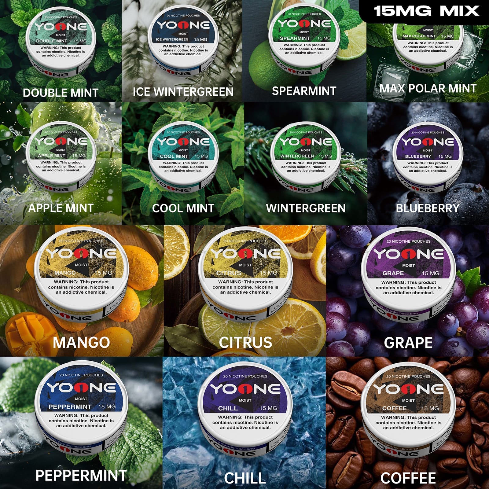 YOONE 15MG Nicotine Pouches (Moisture) Combo Flavor Set Buy 7 Get 7 Free